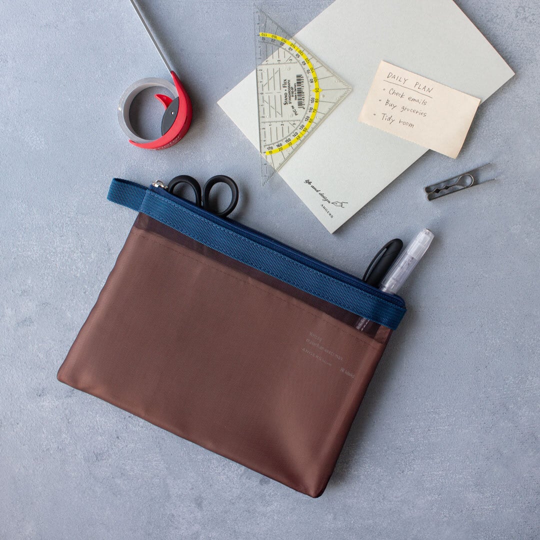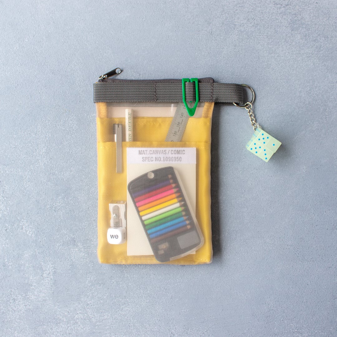 外側がメッシュで透けるため、入れるものによって印象も変わります。