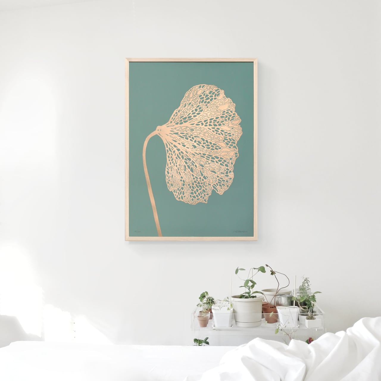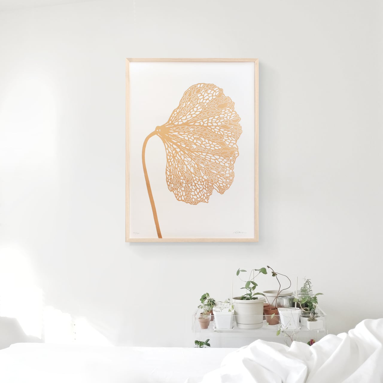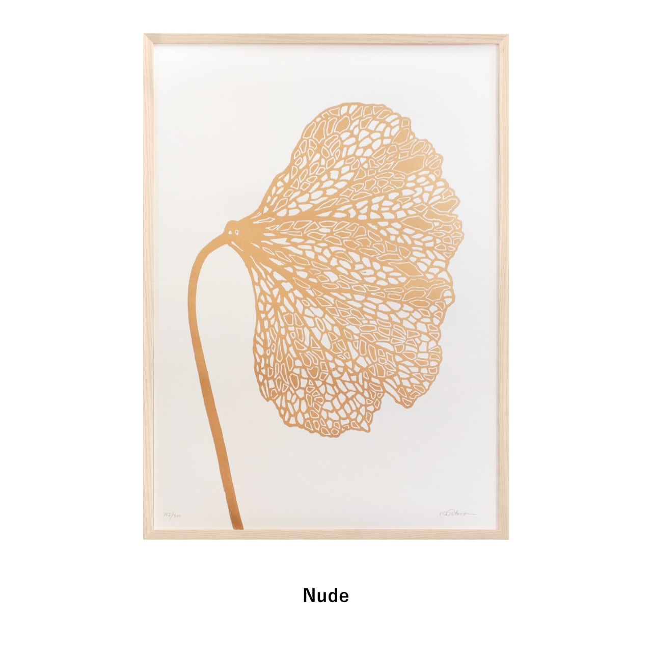 Monika Petersen Lino Print ポスター Poppy 1 Gold フレームセット