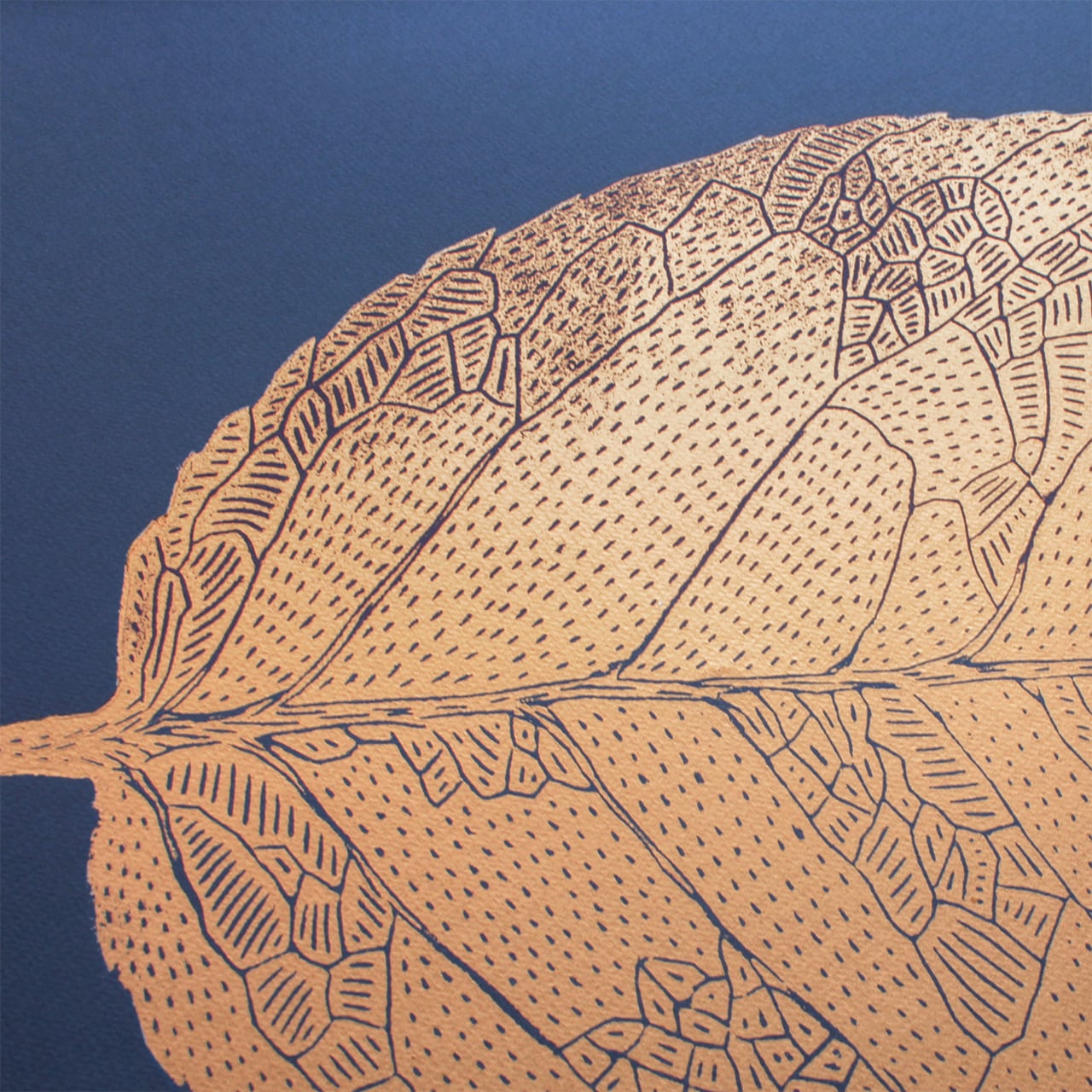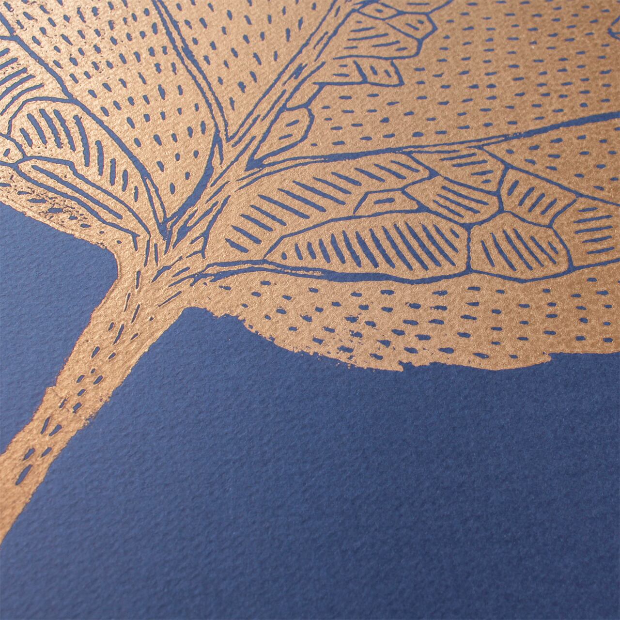 Monika Petersen Lino Print ポスター Birch Leaf Gold フレームセット